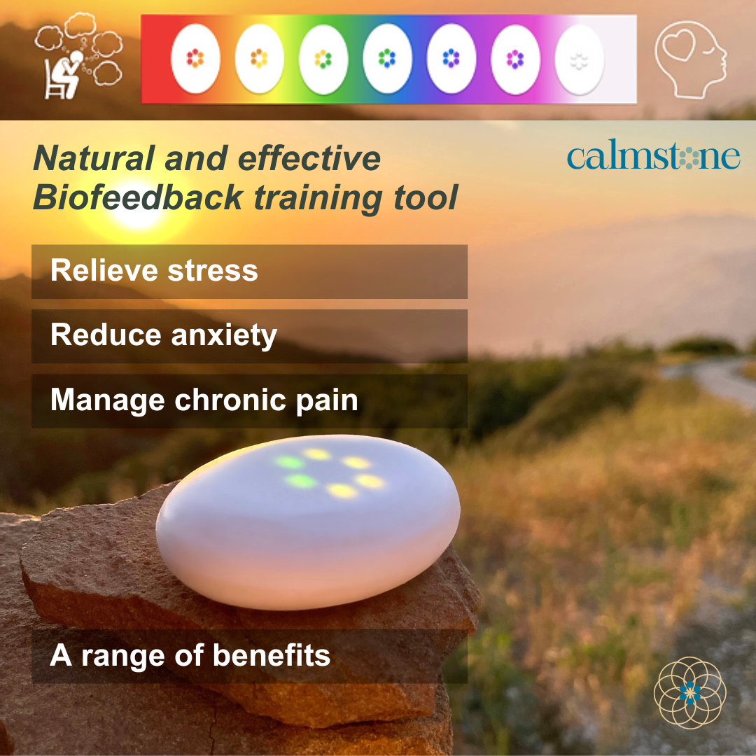 Calmstone is an innovative biofeedback training tool designed to help you take control of your well-being. By using an LED display for real-time visual feedback, Calmstone empowers you to train your body to relieve stress, reduce anxiety, and manage chronic pain naturally.